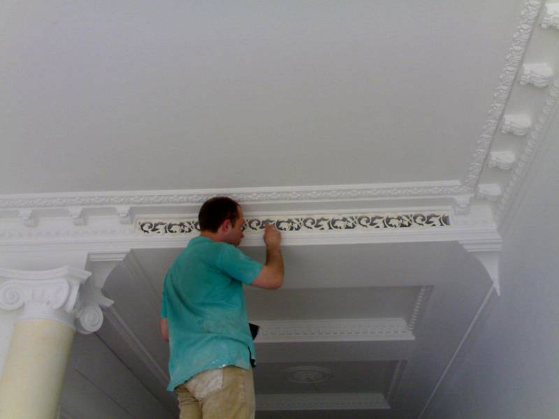 При заказе отделки в ключ - экономия до 200р. Получить скидкуОдин из этапов отделки помещений– установка потолочного плинтуса. Его основная функция – декоративная. Он закрывает стык между потолком и стеной, делая его более мягким и изящным. Кроме наименования плинтус, эту деталь называют галтелью, молдингом или багетом. Плинтус производят из разных материалов. В связи с этим для монтажа используются различные методы фиксации и финишной отделки. Дизайн и размеры изделий подбирают в соответствии со стилем помещения. Некоторые виды плинтуса позволяют корректировать пропорции пространства. Таким образом, этот элемент отделки может служить не только во благо эстетики, но и функционально.