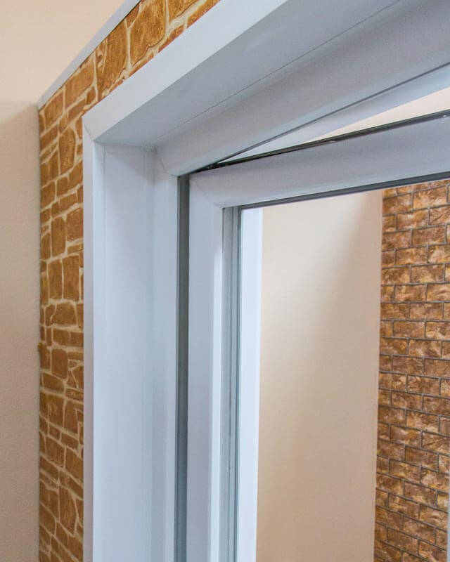 - Облицовка периметра проема пластиковыми уголками