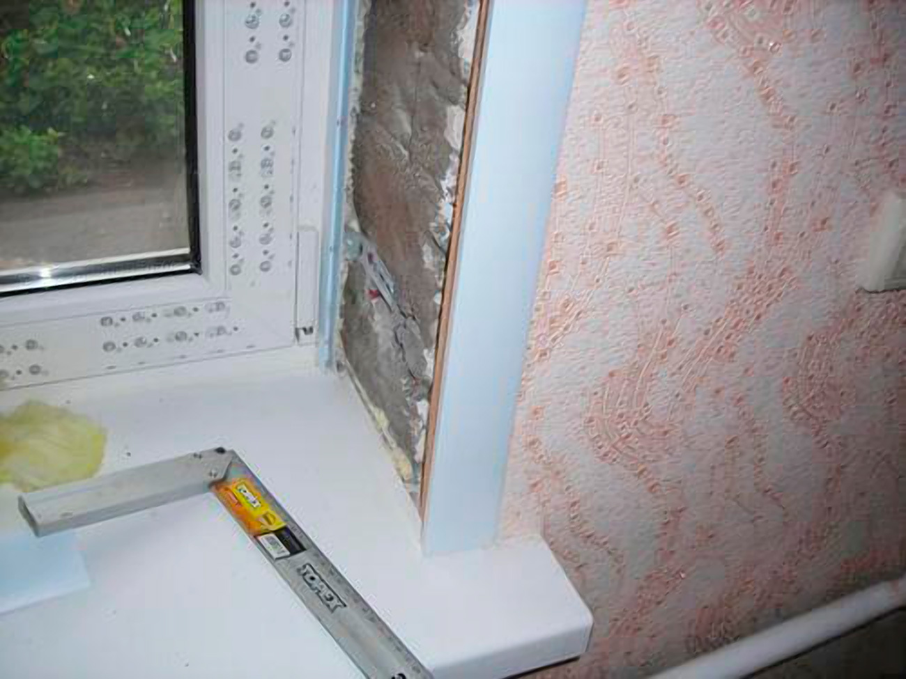 - Оштукатуривание примыкания откоса и стены